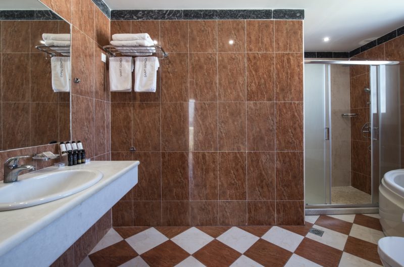 Ευρύχωρο τετράκλινο δωμάτιο με ένα διπλό κρεβάτι και ένα καναπέ που γίνεται δύο μονά ξεχωριστά κρεβάτια. Βεράντα με έπιπλα κήπου και θέα στον κήπο